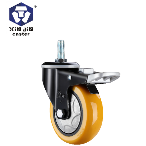 Nhiệm vụ nặng nề bề mặt tròn PU một mảnh khung Caster bánh xe với phanh